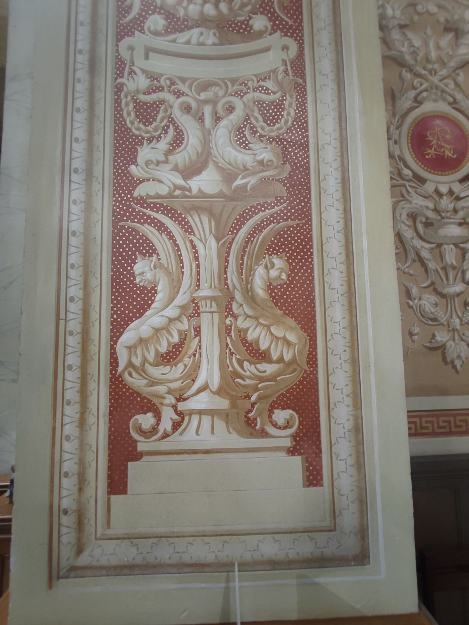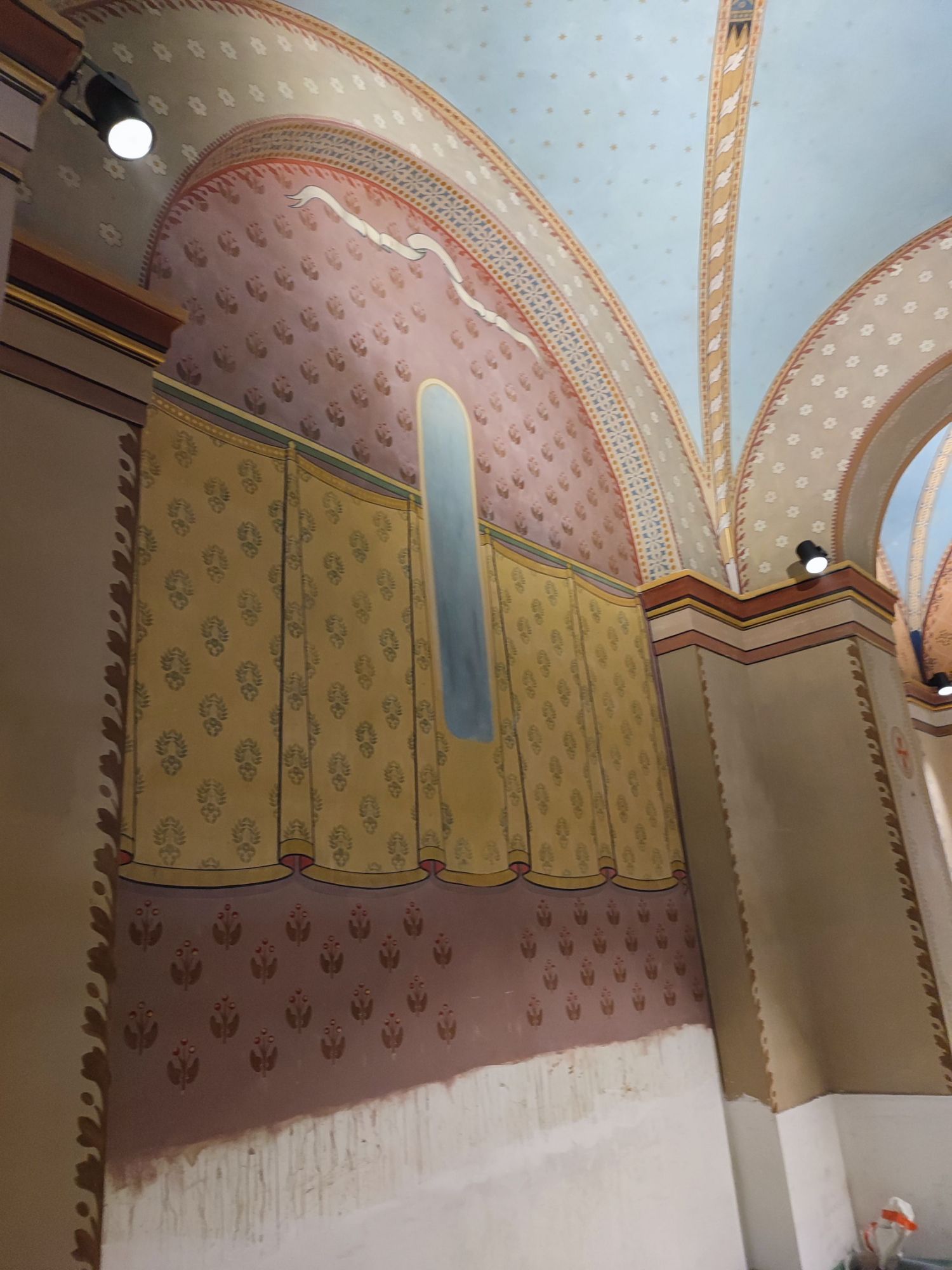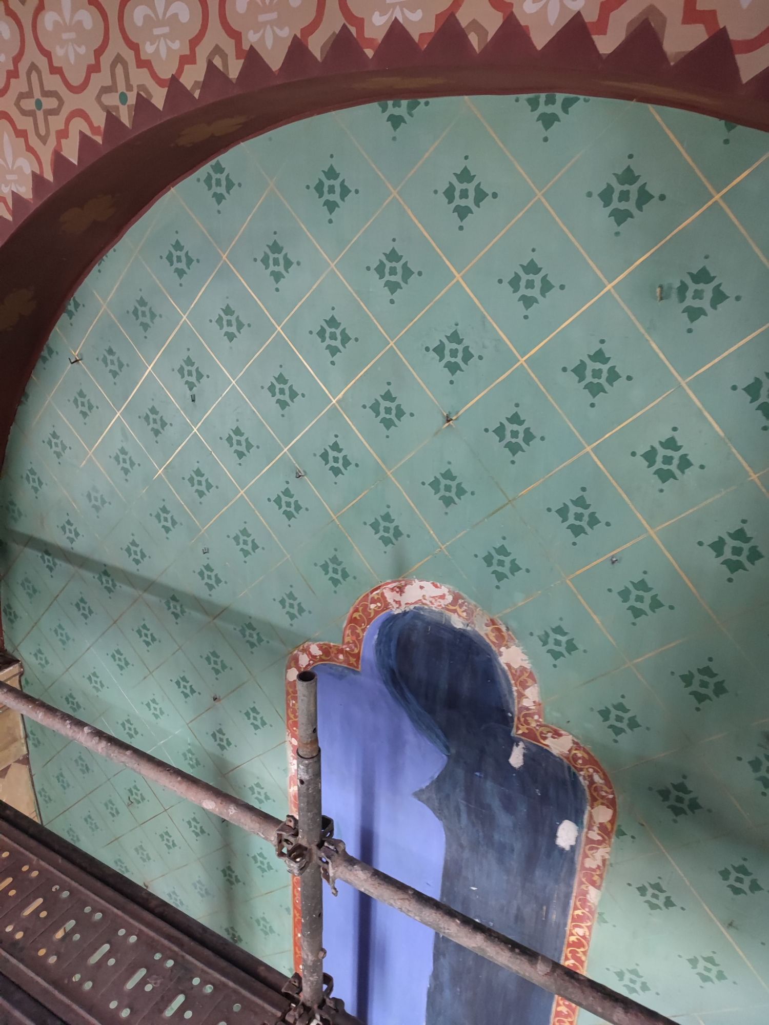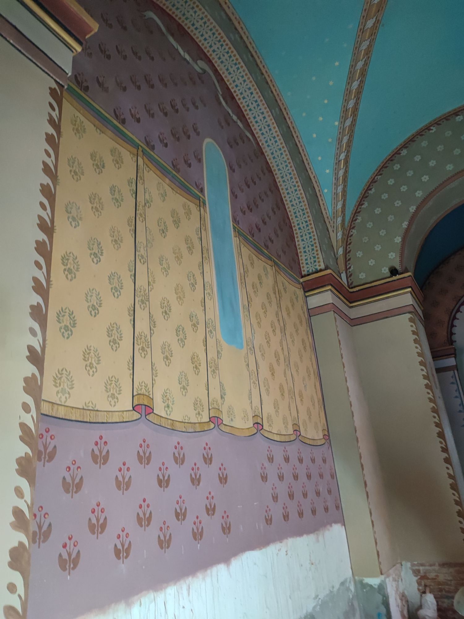 Les peintures murales, présentes dans de nombreux édifices historiques, sont souvent exposées aux agressions du temps, à l’humidité, aux fissures ou à la dégradation des pigments. Mon travail de restauration consiste à stabiliser les couches picturales, à réparer les fissures et à rétablir les couleurs dans le respect des techniques originales. Collaborer avec des ateliers spécialisés dans la restauration de monuments historiques me permet d’intervenir sur des fresques et décors peints classés, en suivant des protocoles stricts établis par les experts du patrimoine.