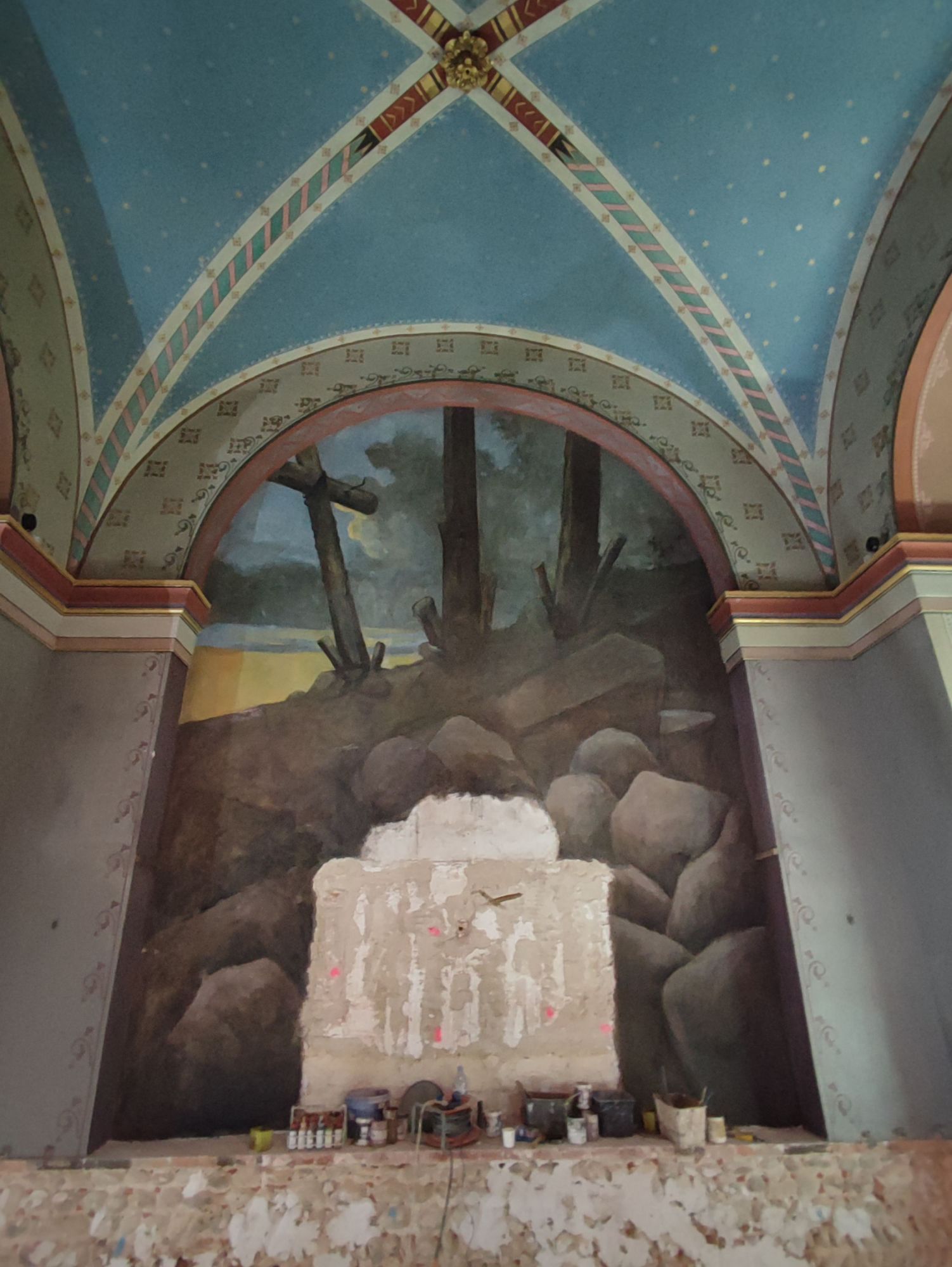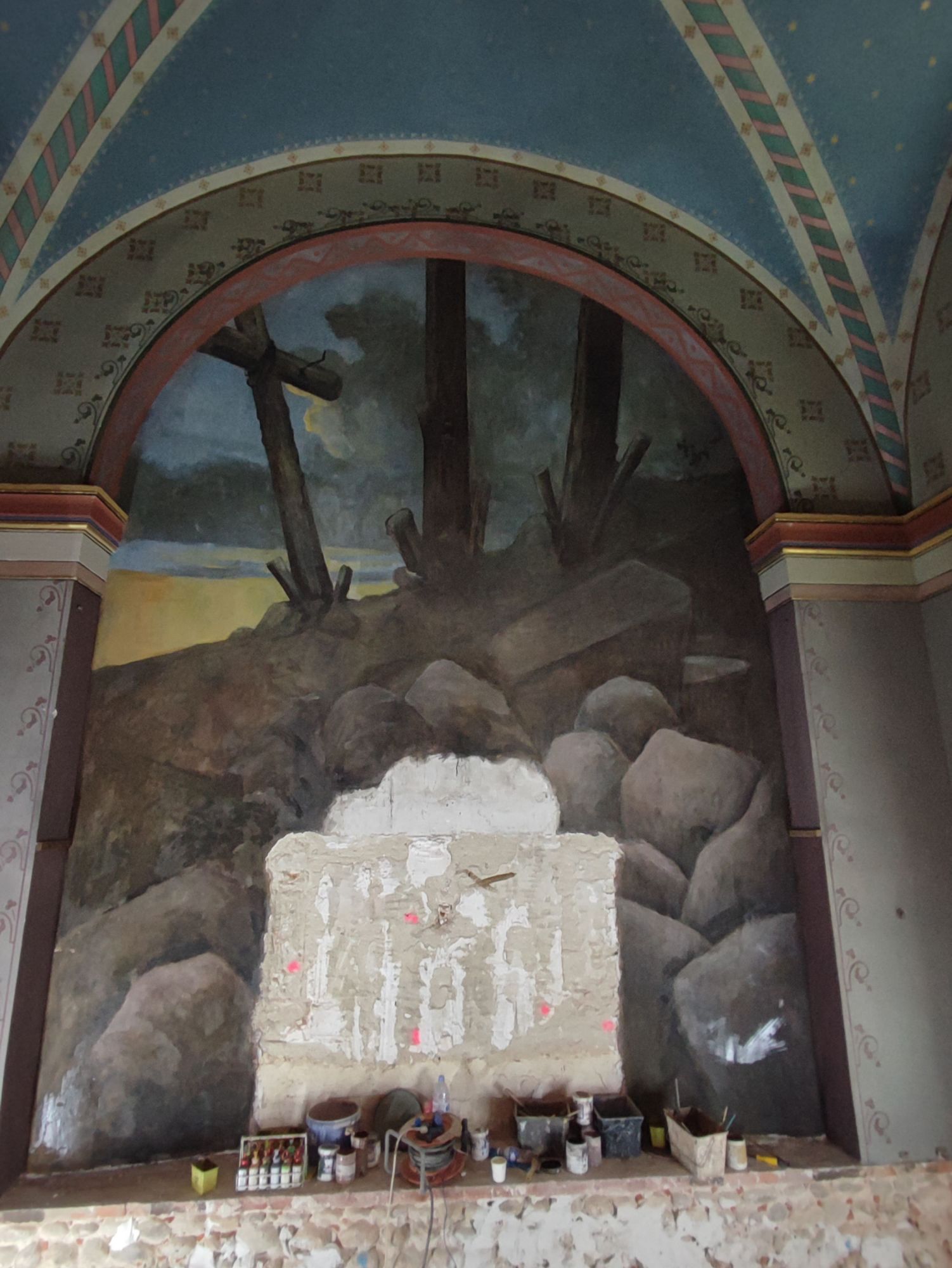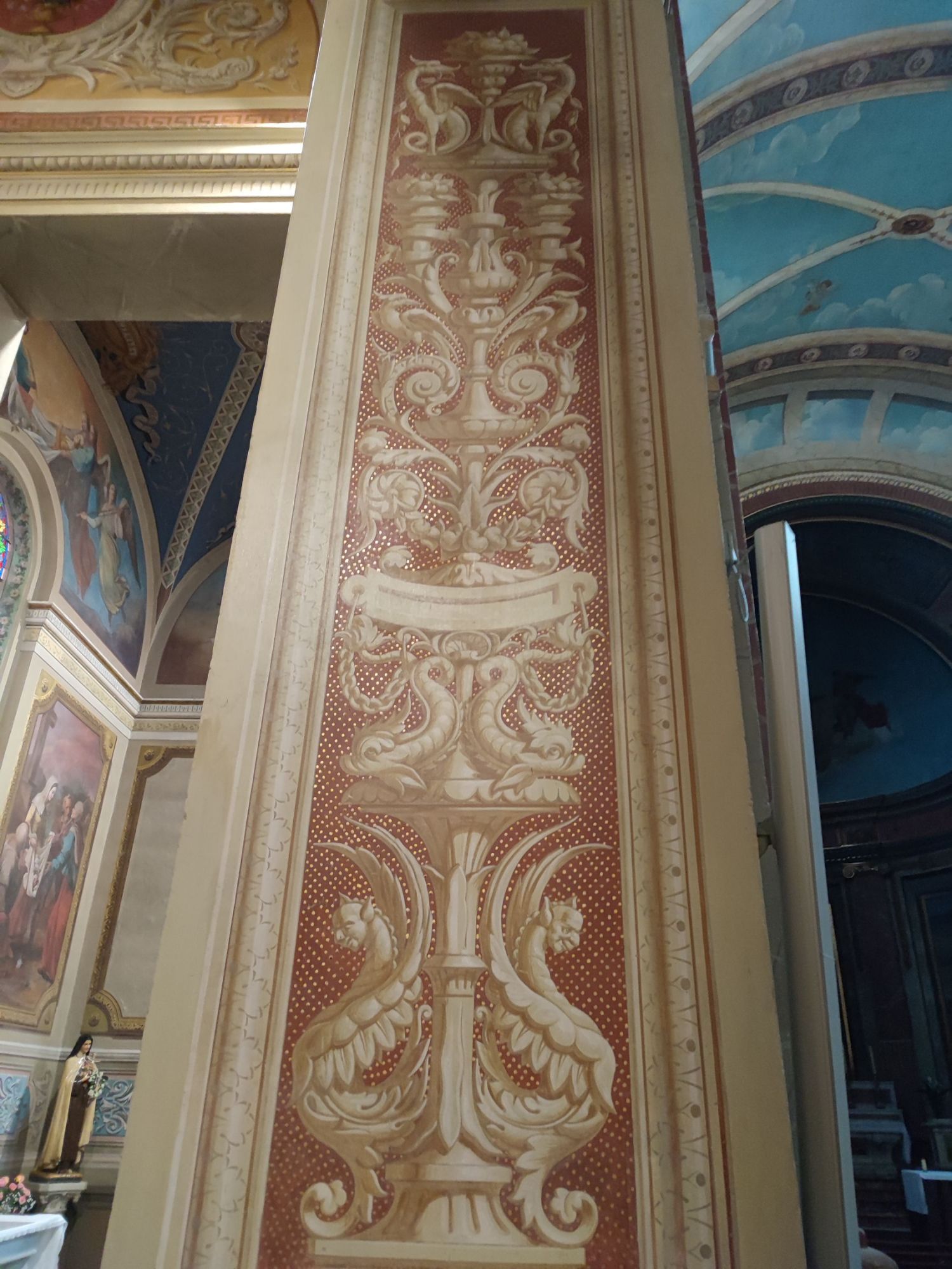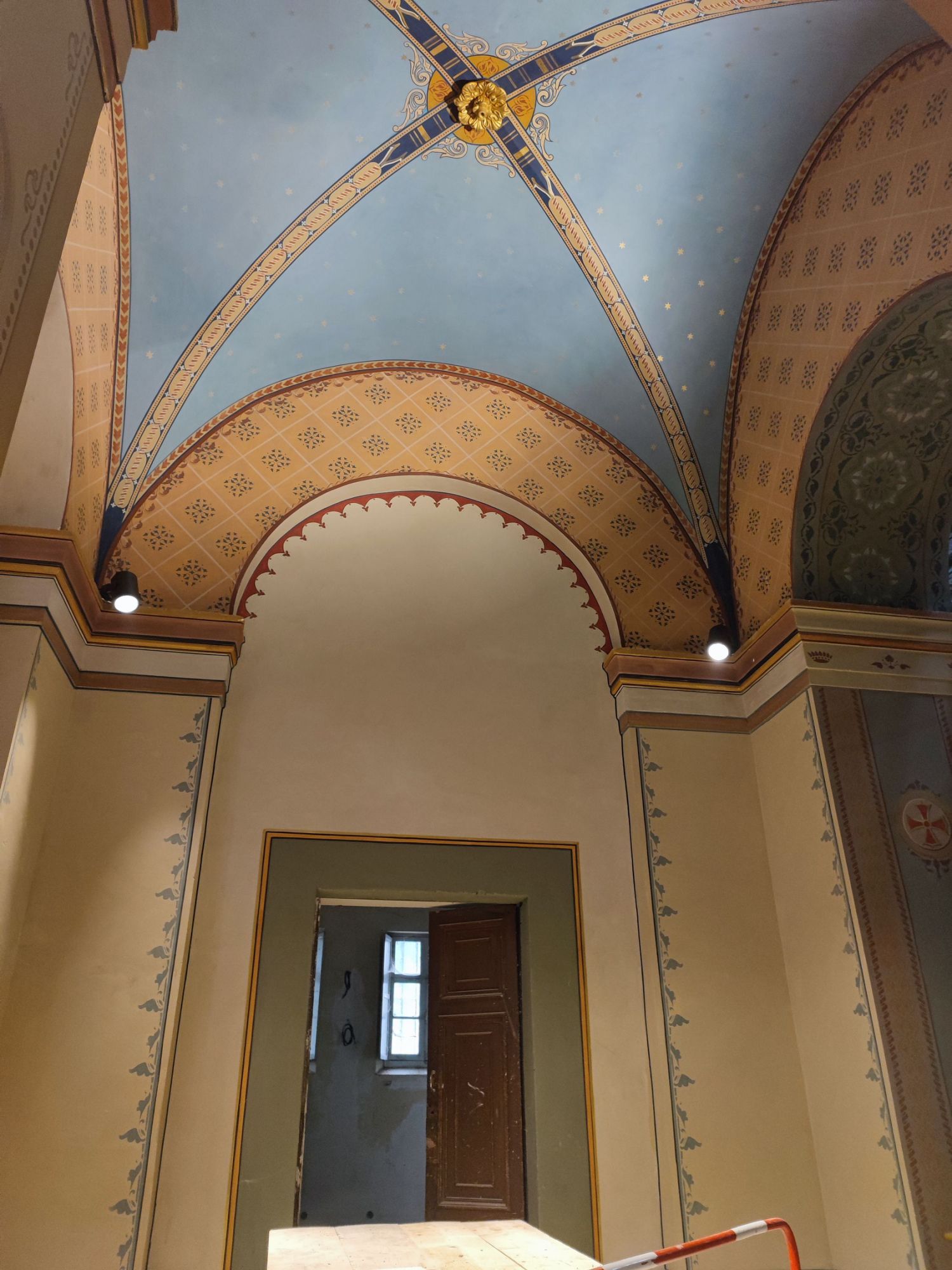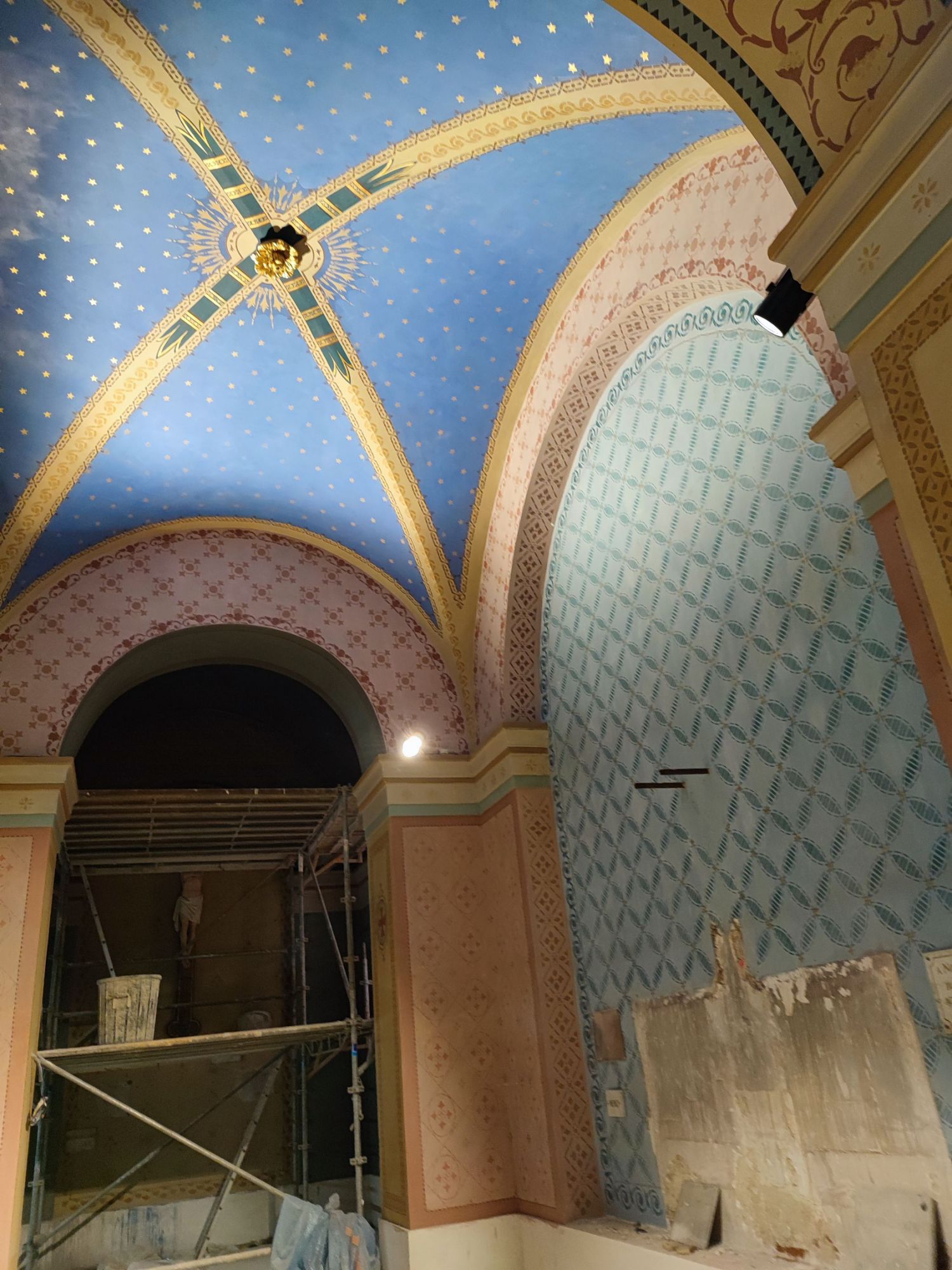Les peintures murales, présentes dans de nombreux édifices historiques, sont souvent exposées aux agressions du temps, à l’humidité, aux fissures ou à la dégradation des pigments. Mon travail de restauration consiste à stabiliser les couches picturales, à réparer les fissures et à rétablir les couleurs dans le respect des techniques originales. Collaborer avec des ateliers spécialisés dans la restauration de monuments historiques me permet d’intervenir sur des fresques et décors peints classés, en suivant des protocoles stricts établis par les experts du patrimoine.