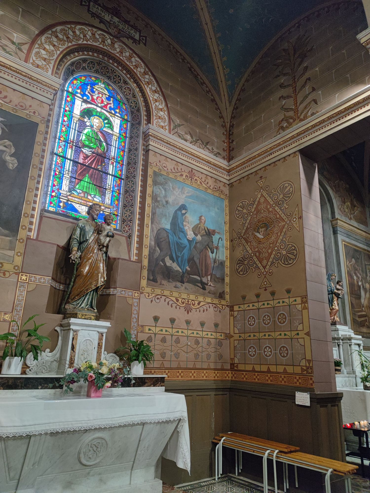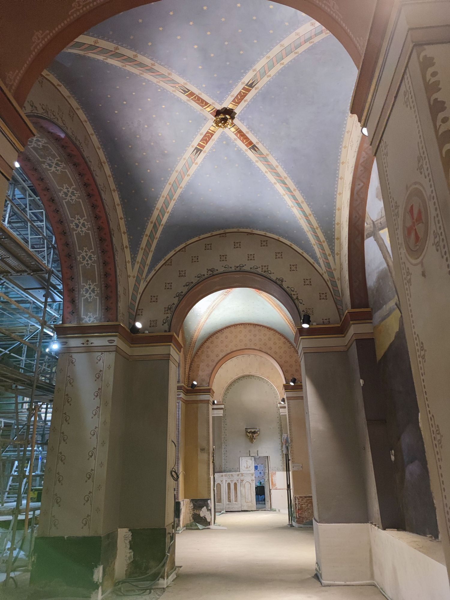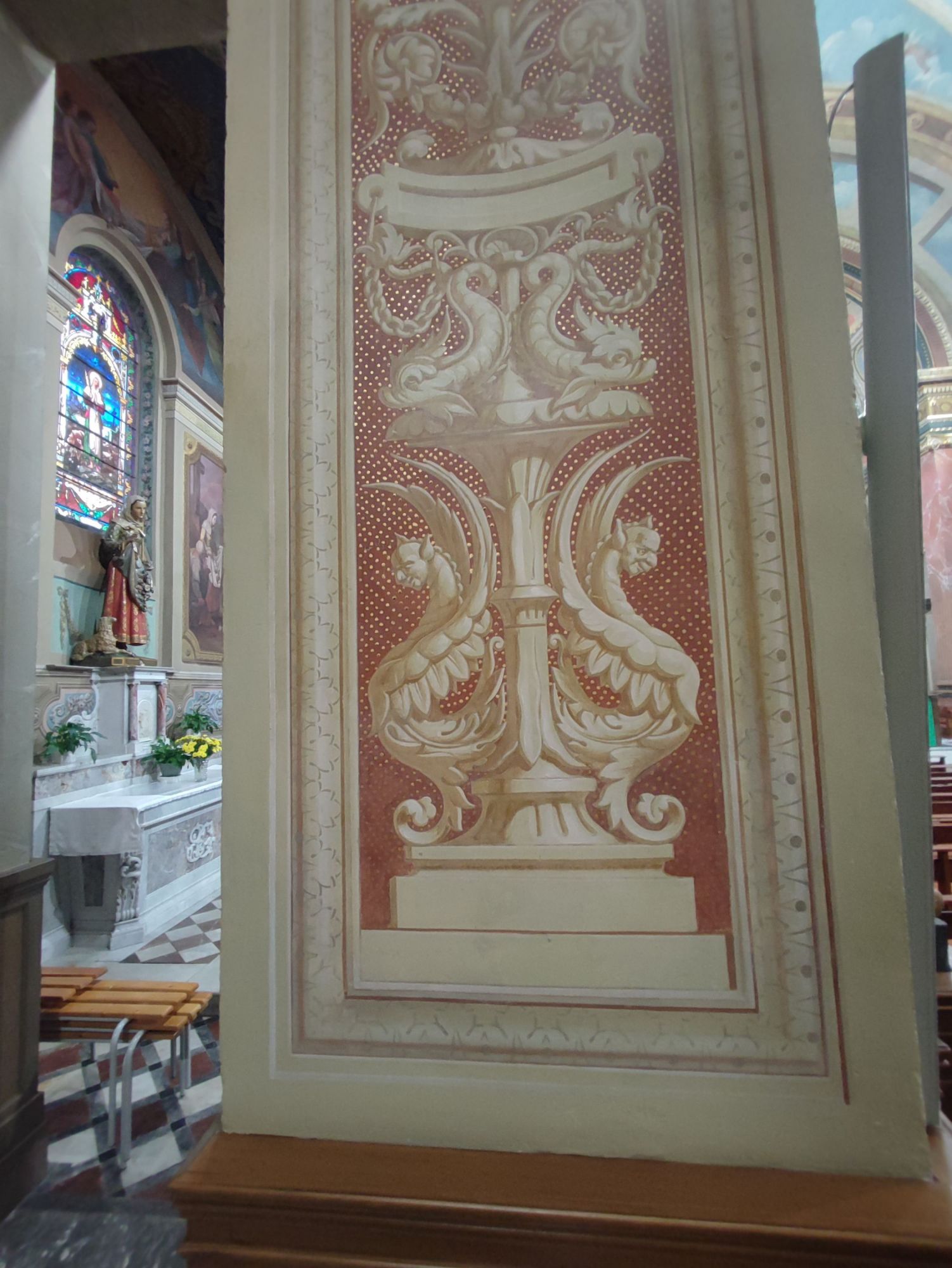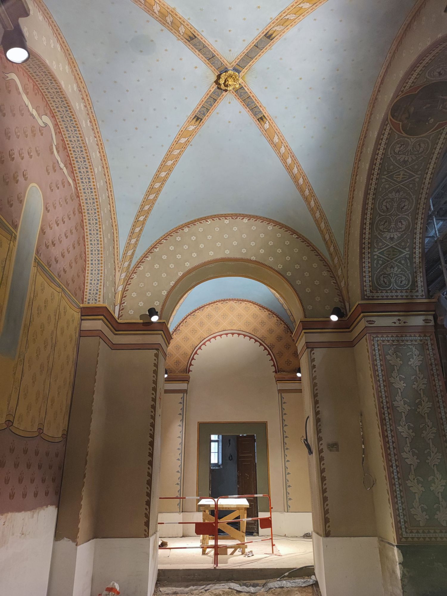 Les peintures murales, présentes dans de nombreux édifices historiques, sont souvent exposées aux agressions du temps, à l’humidité, aux fissures ou à la dégradation des pigments. Mon travail de restauration consiste à stabiliser les couches picturales, à réparer les fissures et à rétablir les couleurs dans le respect des techniques originales. Collaborer avec des ateliers spécialisés dans la restauration de monuments historiques me permet d’intervenir sur des fresques et décors peints classés, en suivant des protocoles stricts établis par les experts du patrimoine.
