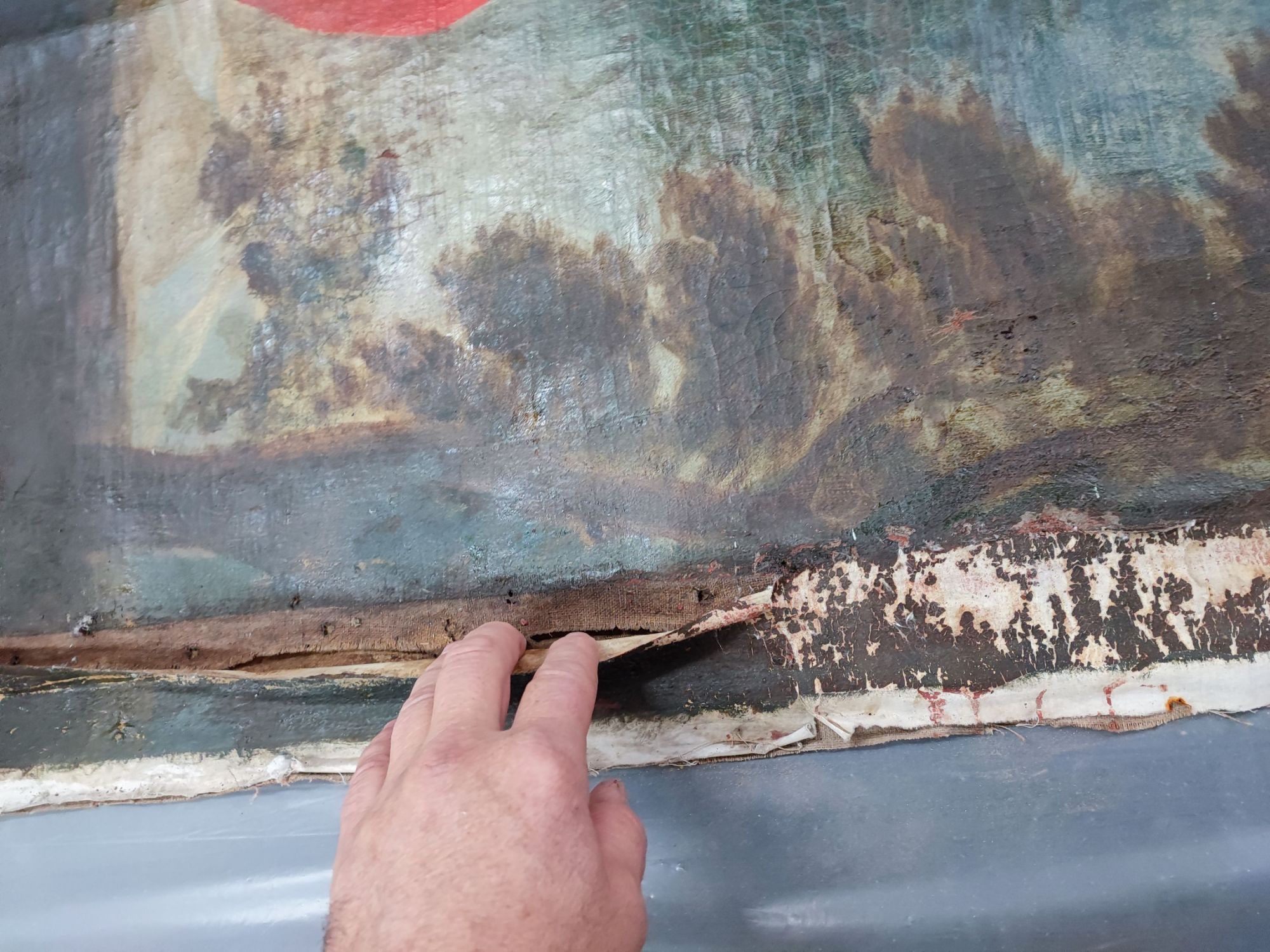 La toile peut s’affaiblir, se déchirer ou souffrir d’un châssis déformé, tandis que les couches picturales peuvent s’écailler, se ternir ou être recouvertes de vernis jauni. La restauration procèdent à des analyses approfondies pour déterminer les causes des dégradations et choisir les traitements appropriés. Que ce soit pour la réparation du châssis, la consolidation de la toile, ou la réintégration picturale, chaque étape vise à préserver l’authenticité de l'œuvre tout en la rendant durable.