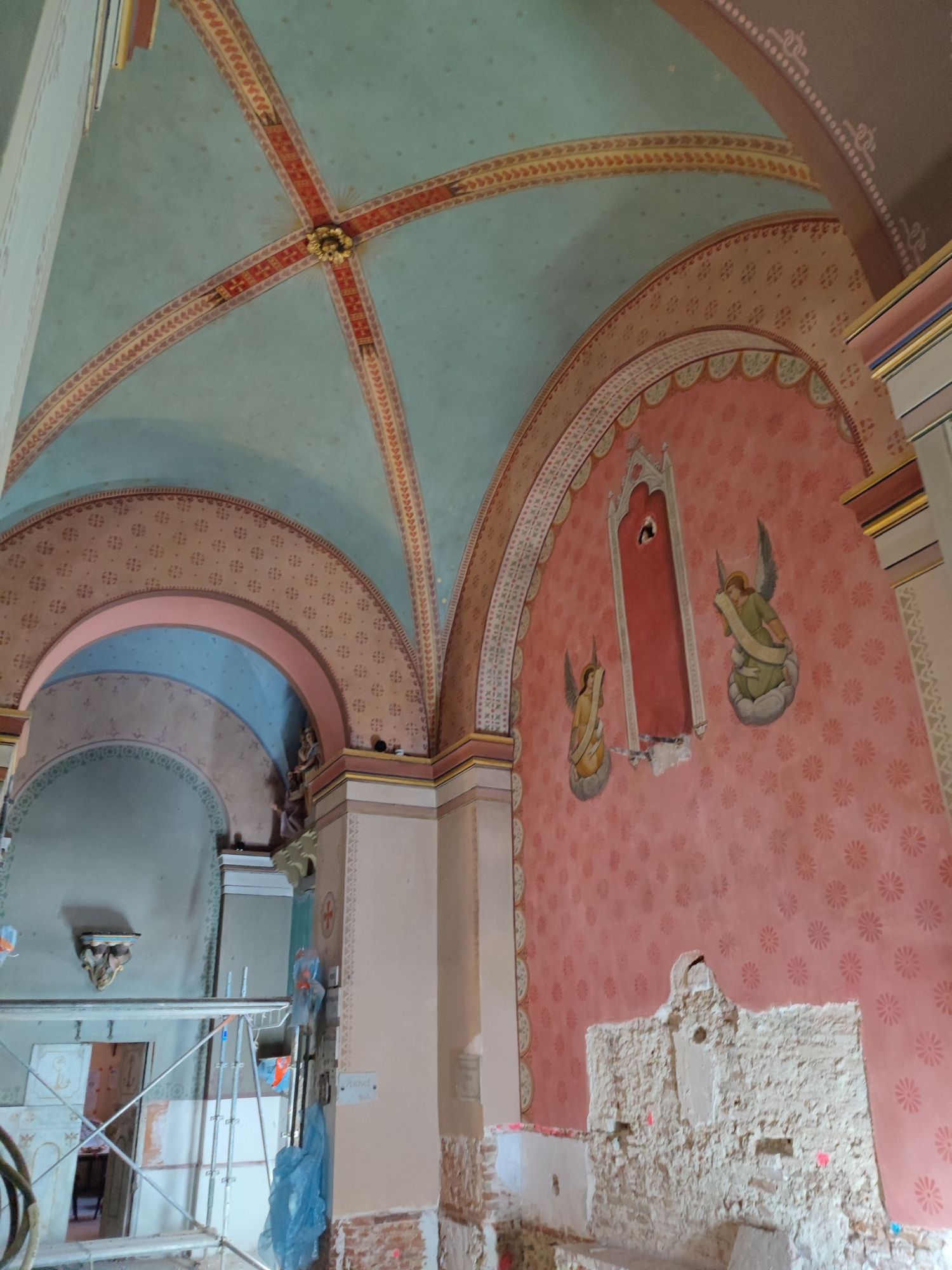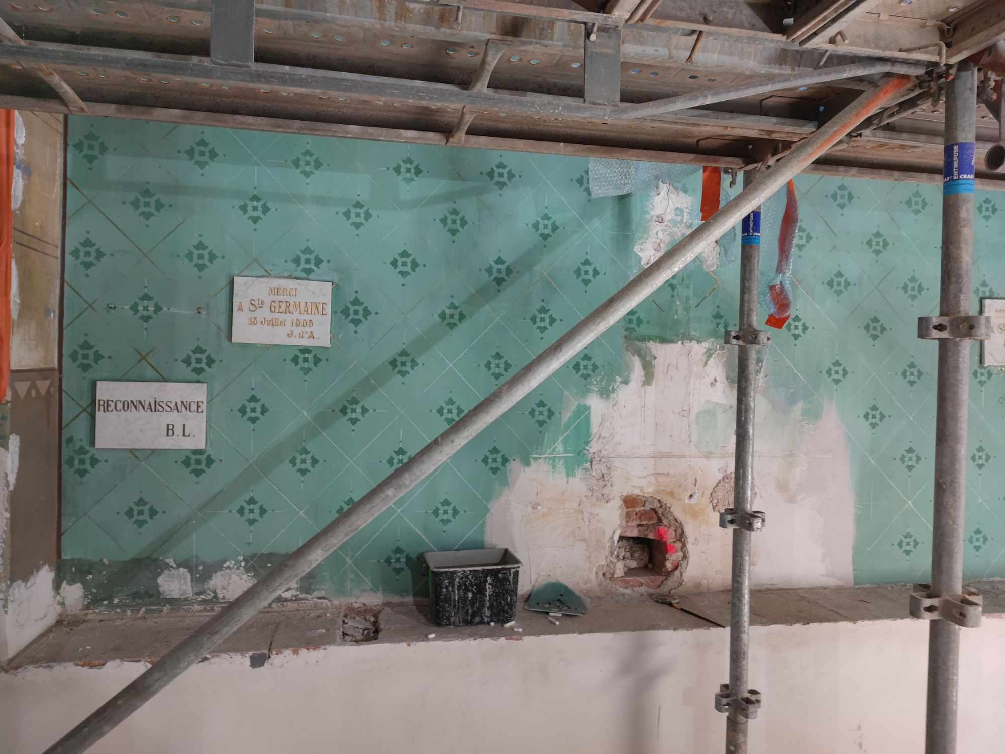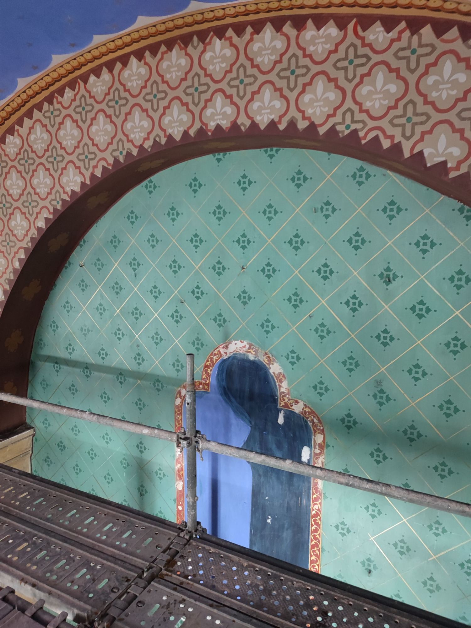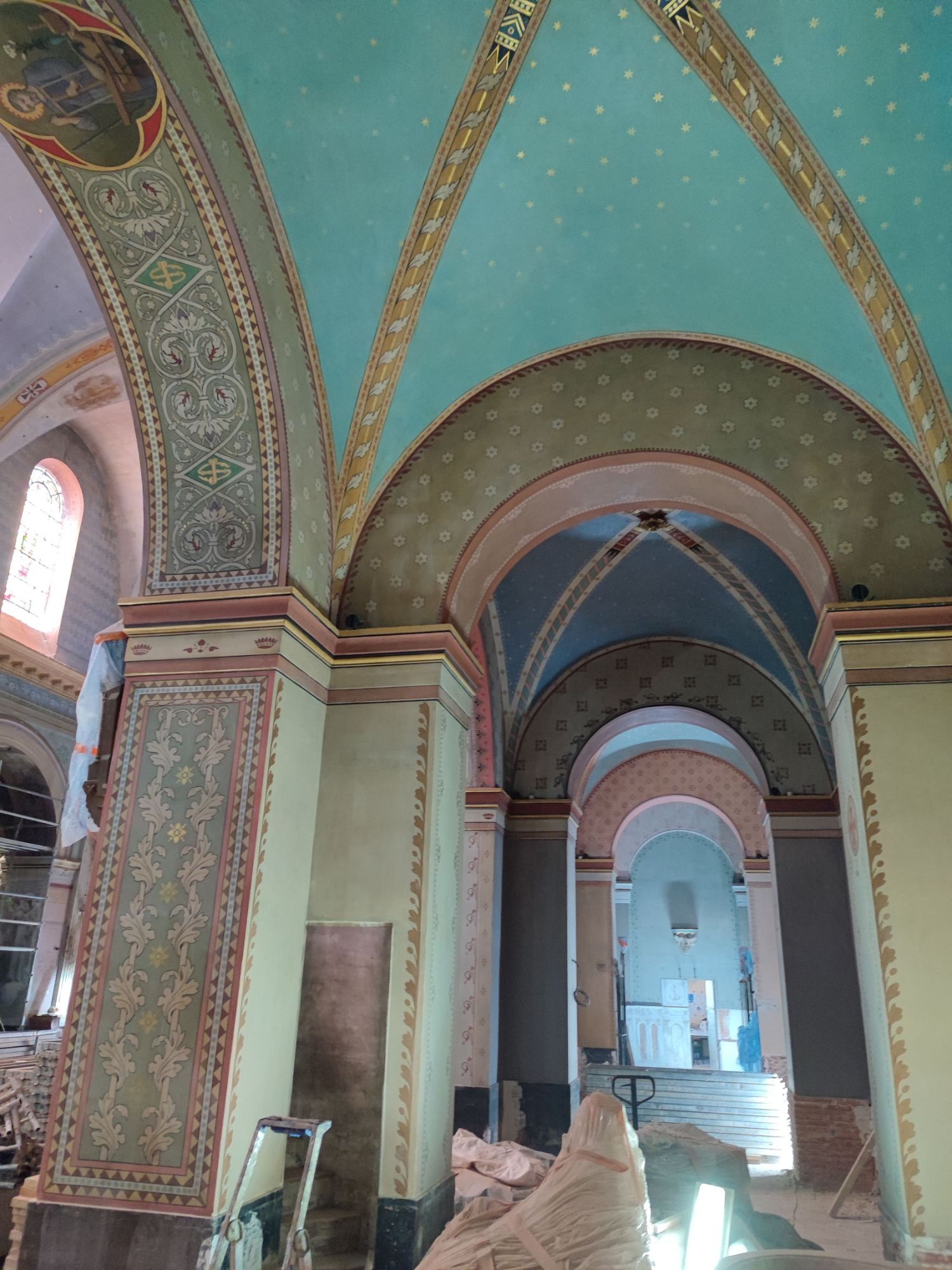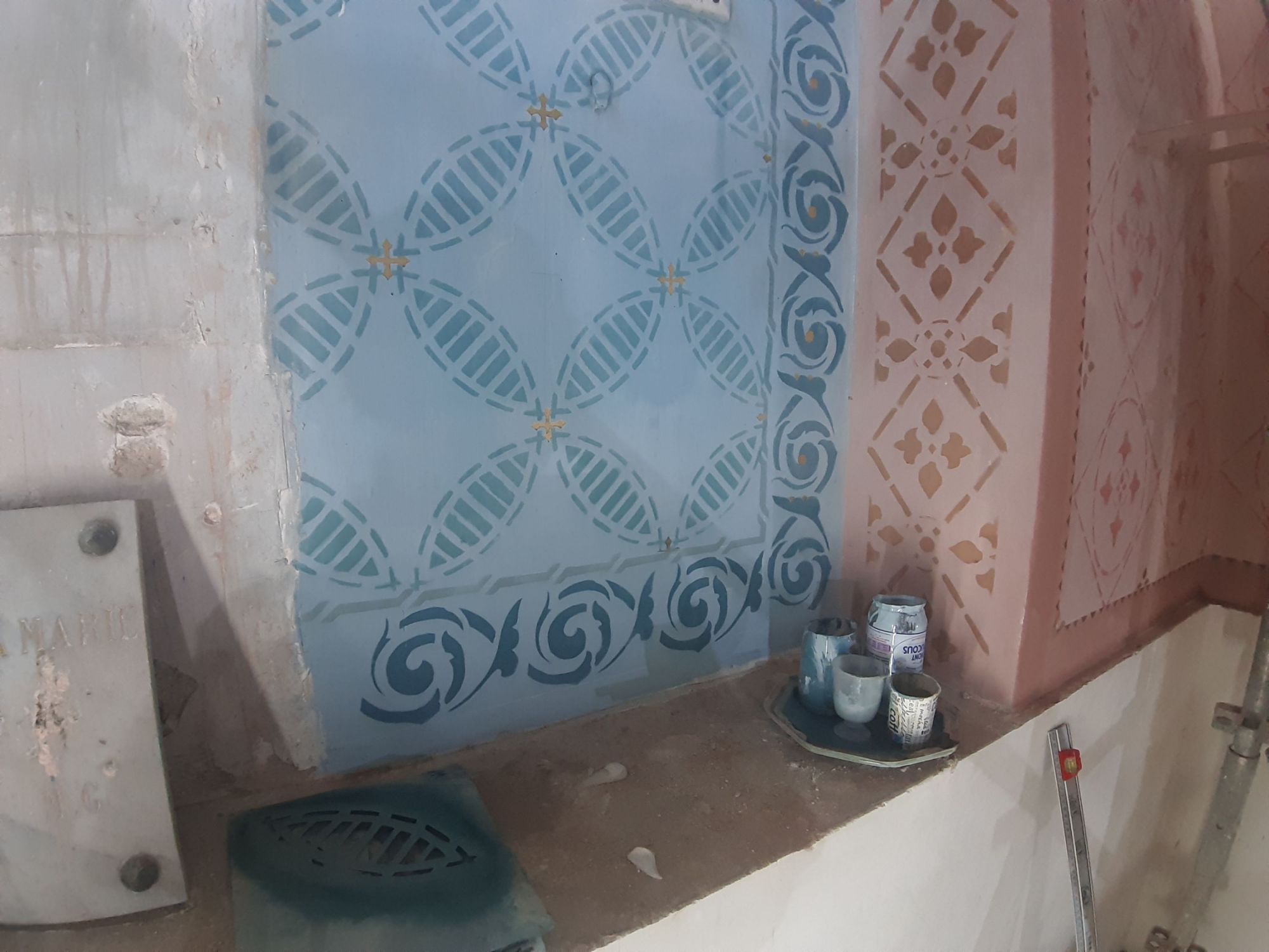 Les peintures murales, présentes dans de nombreux édifices historiques, sont souvent exposées aux agressions du temps, à l’humidité, aux fissures ou à la dégradation des pigments. Mon travail de restauration consiste à stabiliser les couches picturales, à réparer les fissures et à rétablir les couleurs dans le respect des techniques originales. Collaborer avec des ateliers spécialisés dans la restauration de monuments historiques me permet d’intervenir sur des fresques et décors peints classés, en suivant des protocoles stricts établis par les experts du patrimoine.