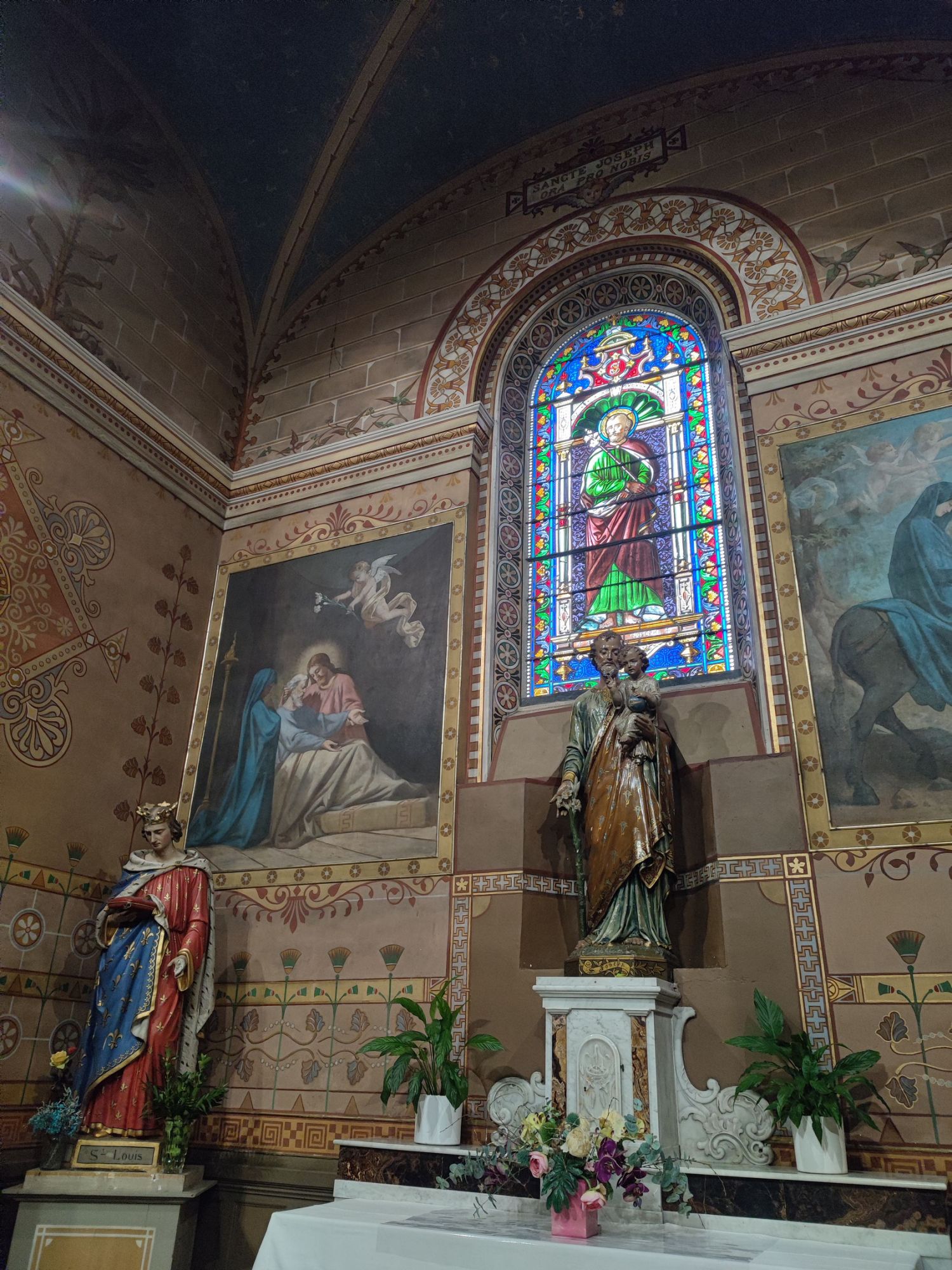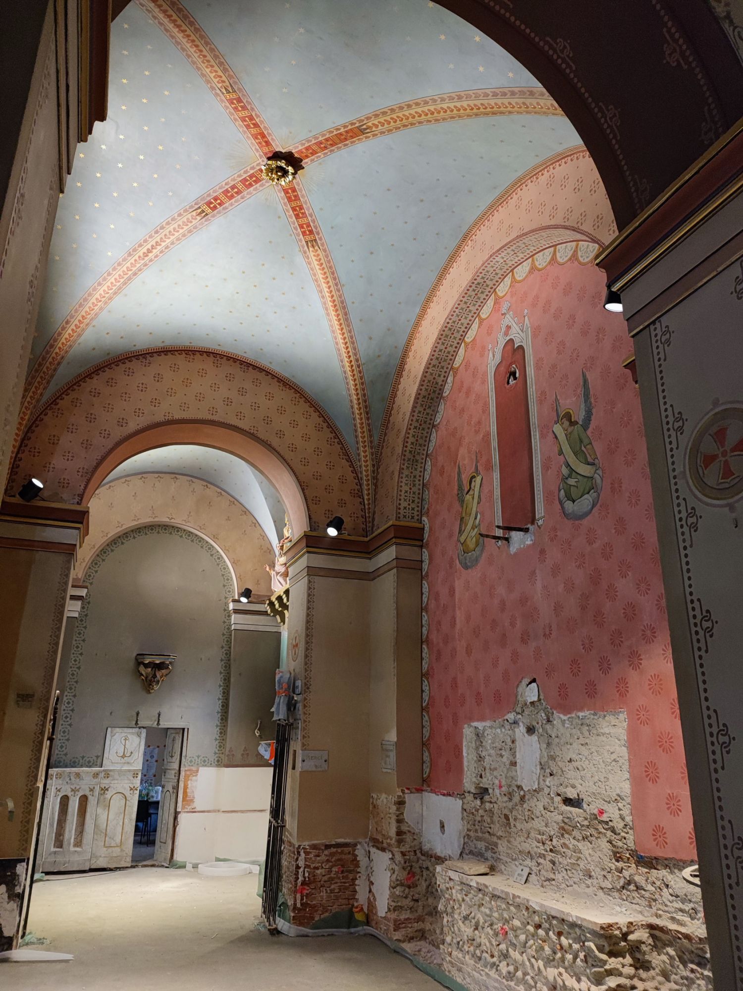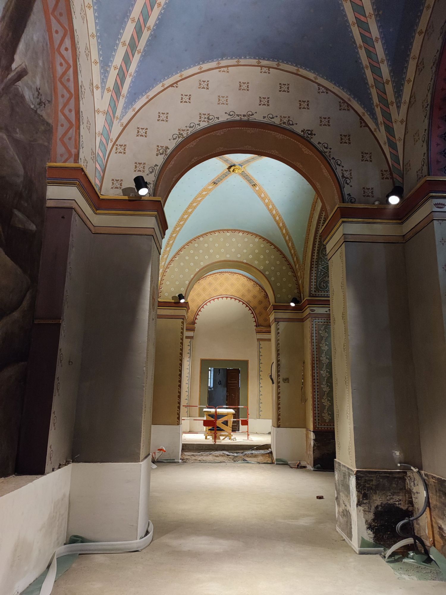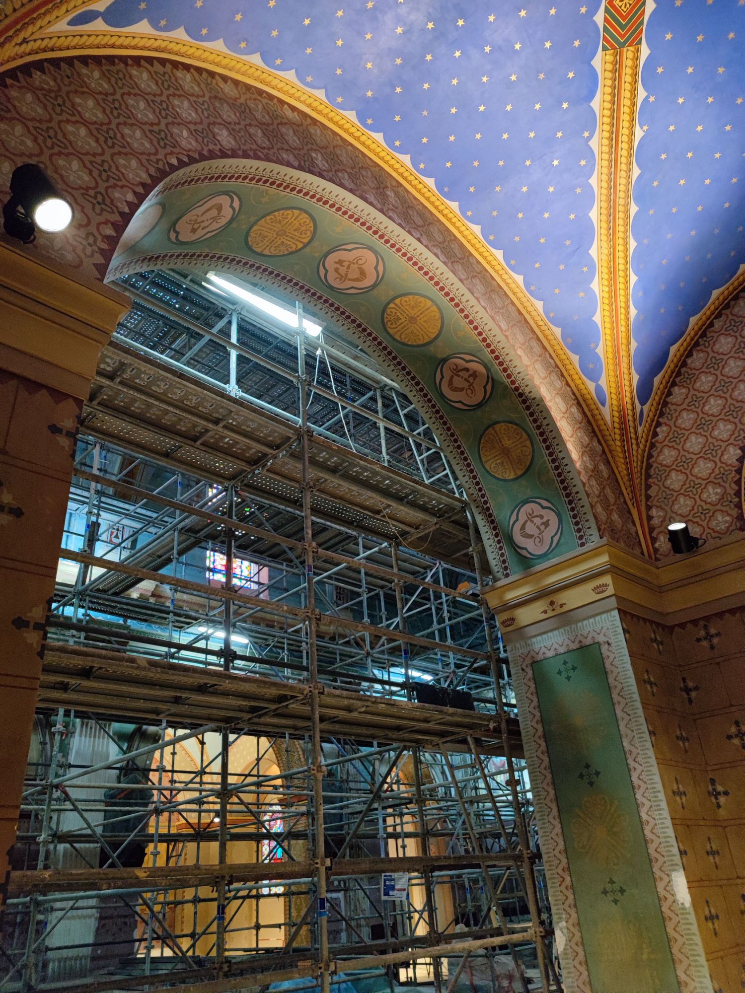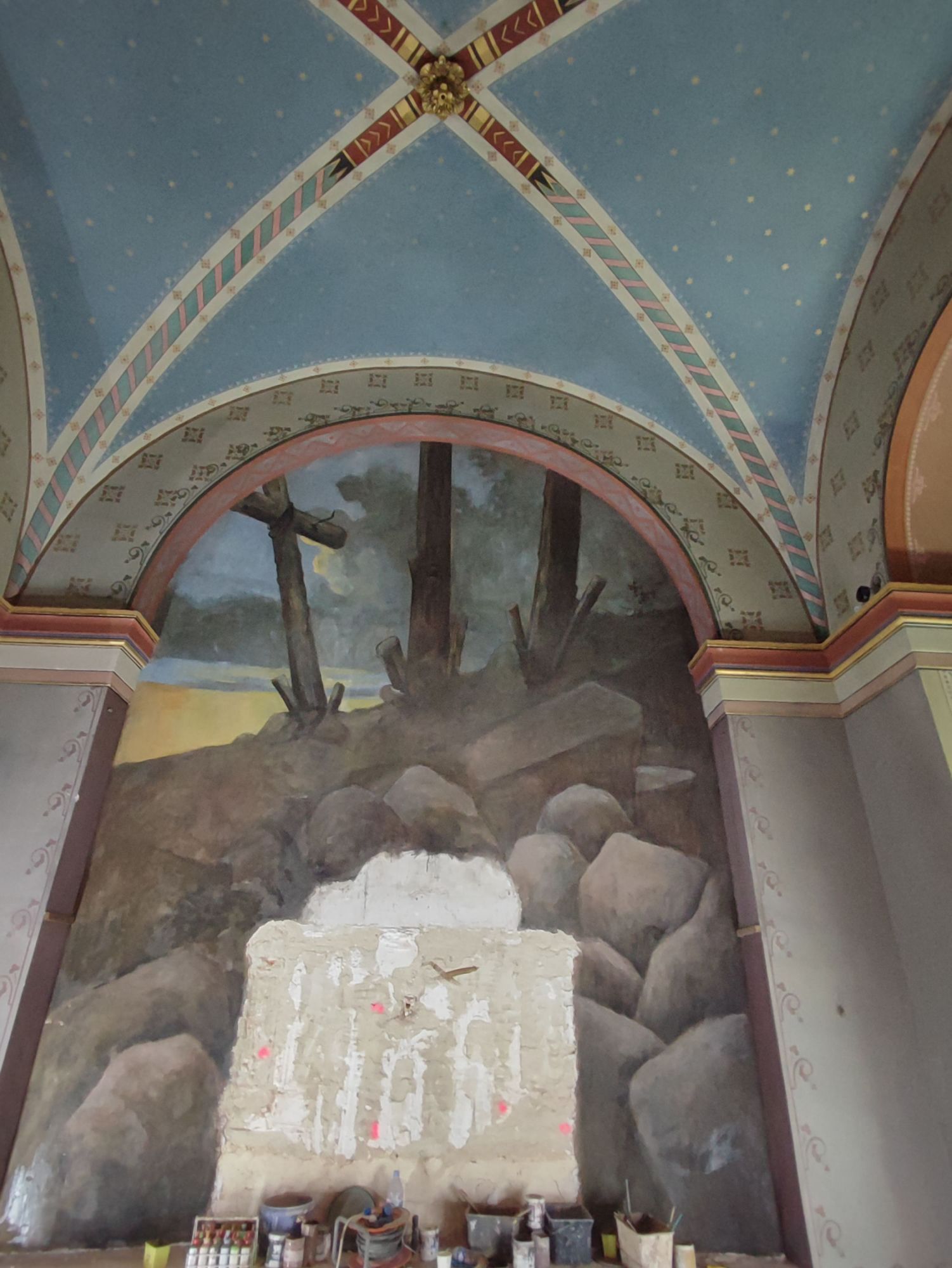 Les peintures murales, présentes dans de nombreux édifices historiques, sont souvent exposées aux agressions du temps, à l’humidité, aux fissures ou à la dégradation des pigments. Mon travail de restauration consiste à stabiliser les couches picturales, à réparer les fissures et à rétablir les couleurs dans le respect des techniques originales. Collaborer avec des ateliers spécialisés dans la restauration de monuments historiques me permet d’intervenir sur des fresques et décors peints classés, en suivant des protocoles stricts établis par les experts du patrimoine.